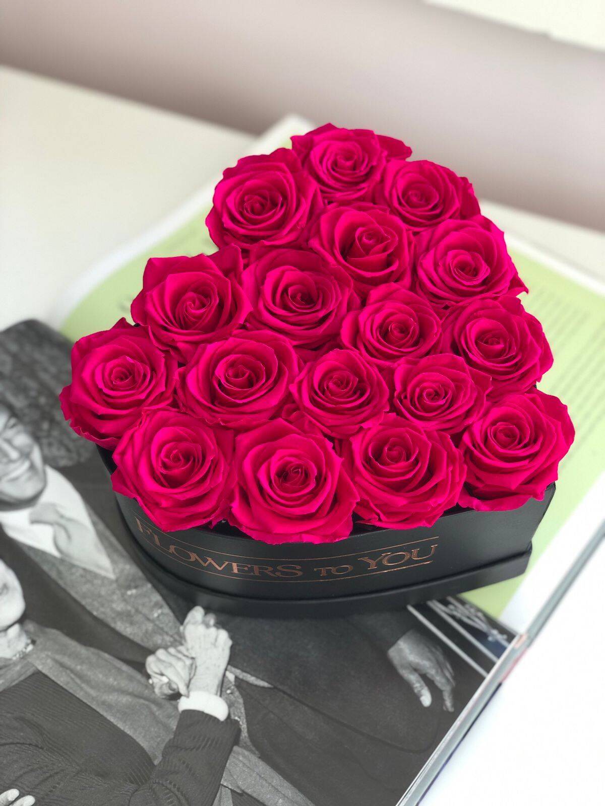 O nosso Arranjo Coração Médio é composto por uma caixa em formato de coração com no mínimo 12 Rosas Preservadas Flowers To You.